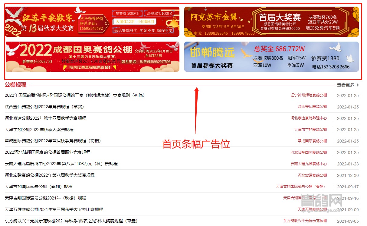 位置:位于青鸽网首页轮播图 具体第几通栏根据广告排期